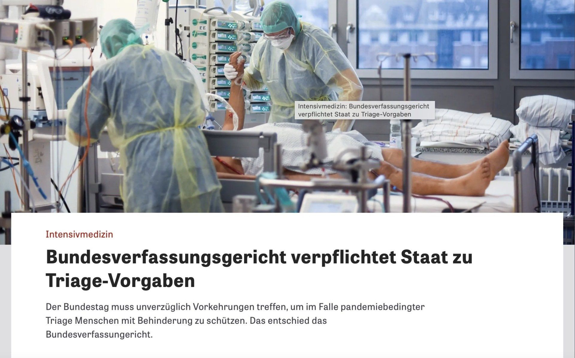 Ich bedanke mich bei den 9 Beschwerdeführenden (sowie abilitywatch als unterstützender Verein) dafür, dass sie beim Bundesverfassungsgericht Beschwerde gegen eine mögliche systematische Benachteiligung von Menschen Behinderungen sowie chronisch Erkrankten beim cornabedingten Traigieren eingelegt haben. Zudem gilt mein Dank den Richter:innen am Bundesverfassungsgericht, welche die antizipierte Gefahr bestätigt und in der Folge den Staat verpflichtet haben, grundlegend regelnd schützend zu unterstützen. Auch das ist Demokratie! 🙏