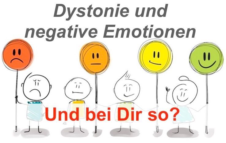 Menschen mit chronischen Erkrankungen, so auch Dystoniebetroffene, sind in der Folge ihrer Symptome von besonderen Emotionen betroffen. Diese werden, im wahrsten Wortsinn, vom Grunde her überwiegend durch ein dystones Zittern, Zucken und/oder Krampfen nebst körperlicher Schmerzen, Funktionseinschränkungen und sichtbaren Behinderungen, in Form von vielfältigen Fehlbewegungen, Fehlstellungen und Fehlhaltungen, ausgelöst.
