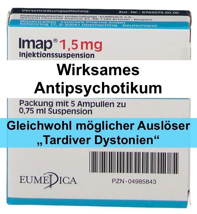 Heute weiß man, dass diese IMAP-Injektionen chronische Dystonien ausgelöst haben bzw. auszulösen vermögen, sogenannte "Tardive Dystonien" (durch bestimmte Medikamente hervorgerufene), chronische Bewegungsstörungen, die Betroffene sodann ein Leben lang beeinträchtigend begleiten.