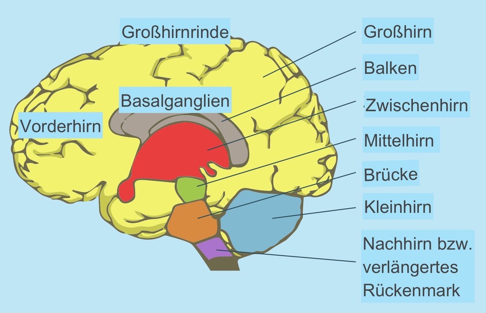Bei den Basalganglien handelt es sich um eine graufarbene Hirnkerngruppe. Von dort wird zunächst einmal der Muskeltonus, also die Grundspannung unserer Skelettmuskeln, reguliert.