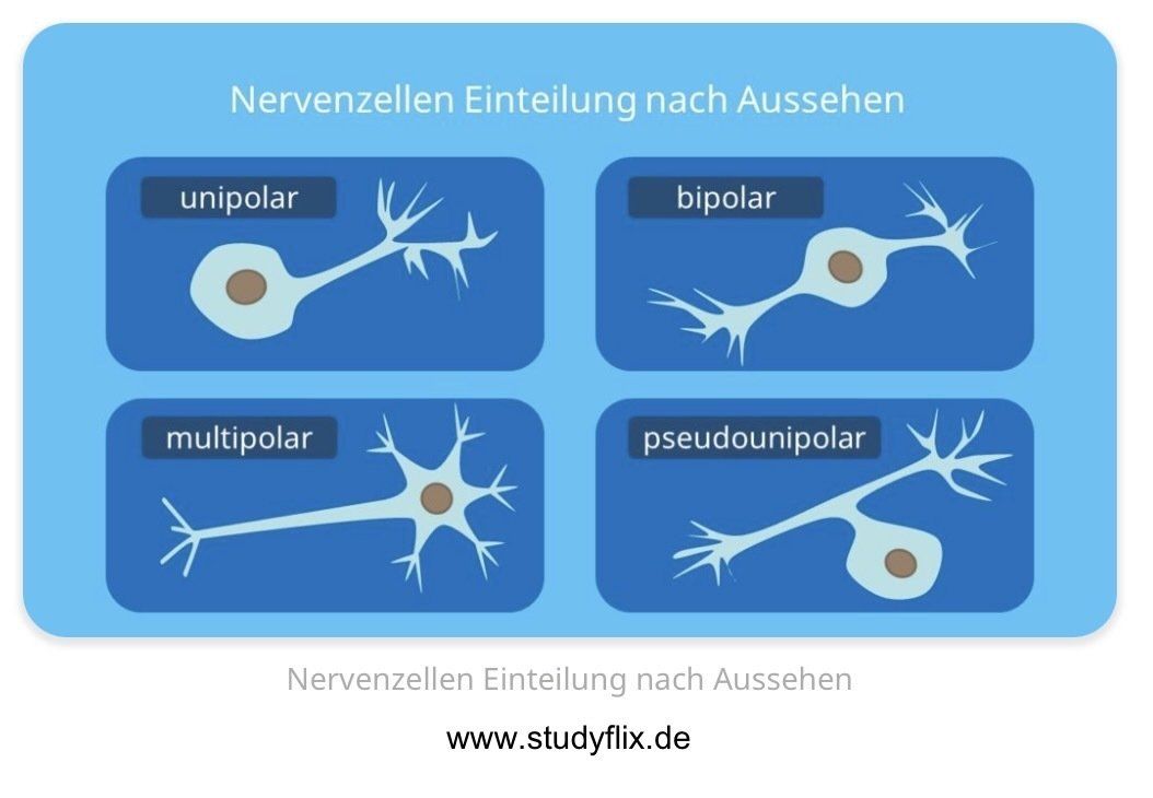 - Bipolare Nervenzellen mit zwei Zellfortsätzen, jeweils einem Dendrit und einem Axon; Vorkommen u.a. im Geruchs- und Sehsinn).