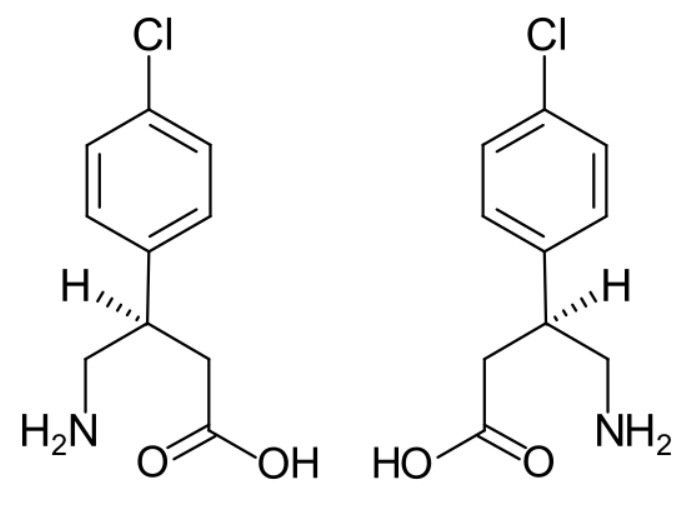 Da der Wirkstoff zentral wirkt, wirkt er auf alle Skelettmuskeln. Oral - als über dem Mund verabreicht bedarf es für eine gute Wirkung stets einer deutlich höheren Dosis, als intrathekal - also unmittelbar in die Rückenmarksflüssigkeit - eingegeben. Dies liegt darin begründet, dass der Wirkstoff lediglich in geringem Umfang die Blut-Hirn-Schranke überwindet und von dort sodann nur sehr langsam in die Rückenmarksflüssigkeit gelangt, wo er schließlich seine Wirkung zu entfalten vermag.